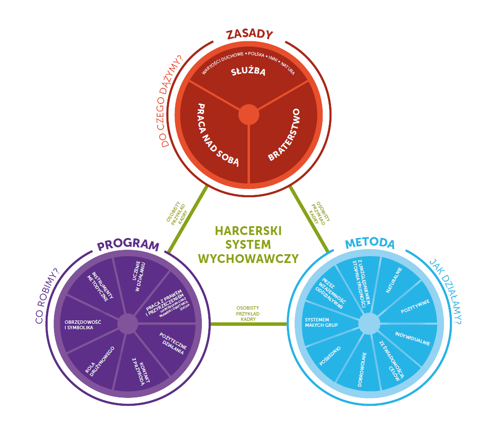 Każde harcerskie działanie ma mieć cel wychowawczy – kształtować określone postawy. Jest on pośrednio realizowany przez zaangażowanie, doświadczenie i refleksję. Rolą instruktora jest stwarzanie warunków, planowanie działań, tworzenie sytuacji wychowawczych oraz wykorzystywanie spontanicznych sytuacji, żeby młody człowiek poprzez wszystkie swoje przeżycia swobodnie i samodzielnie się rozwijał.