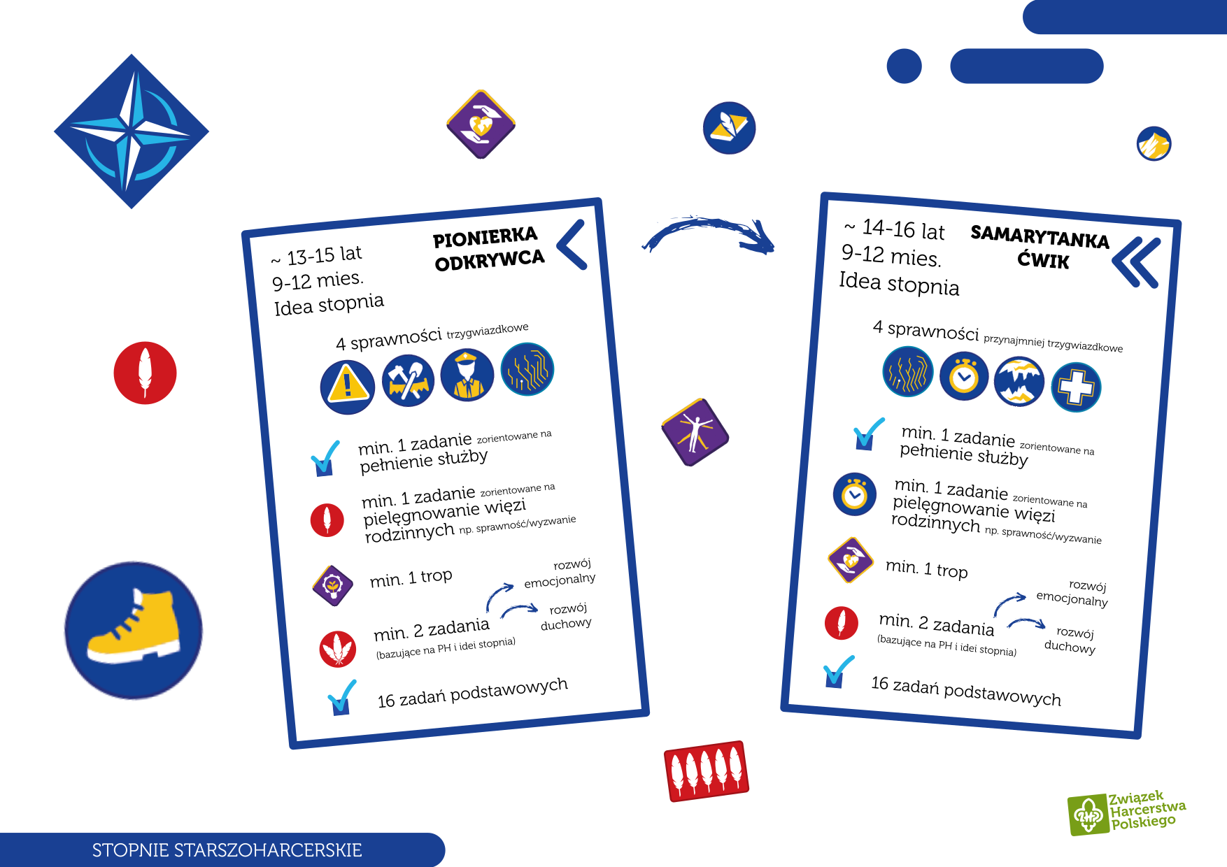 Stopnie w metodyce starszoharcerskiej to pionierka/odkrywca oraz samarytanka/ćwik.